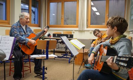Die Gitarren-AG ist aus unserer Schule nicht mehr wegzudenken. Konrad Vollmer bringt mit viel Engagement unseren Schülerinnen und Schülern das Gitarre spielen bei.
